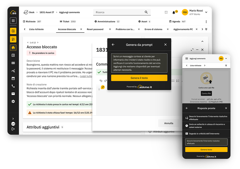 Aumenta la capacità del tuo team di risolvere le richieste con uno strumento intuitivo e integrato con AI.